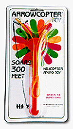 Makes a great gift for high flying adventure. Arrowcopter Single Pack contains one toy per package for hours of flying fun! Watch your Arrowcopter soar up to 300 feet up into the sky and come down gently like a copter.